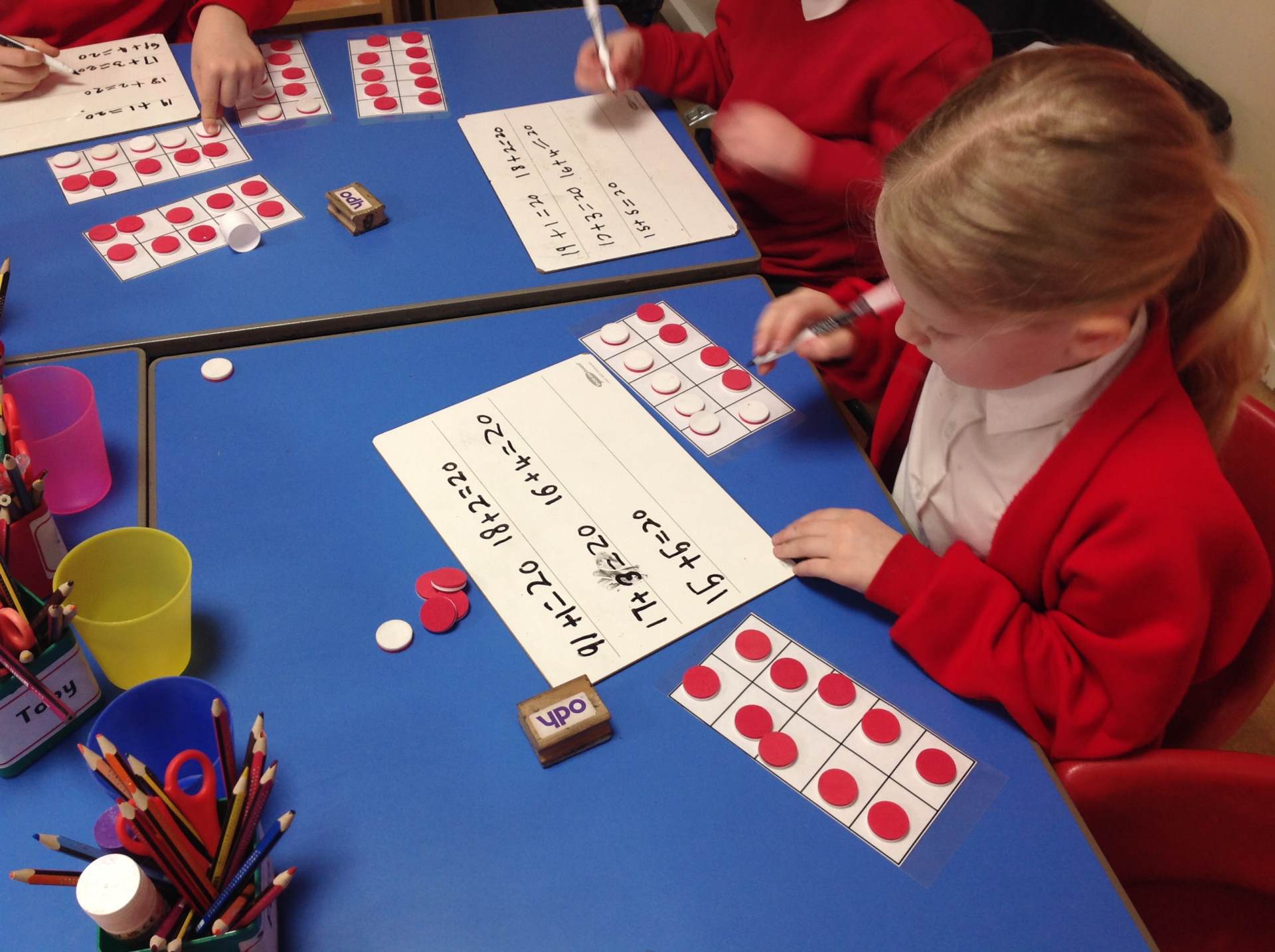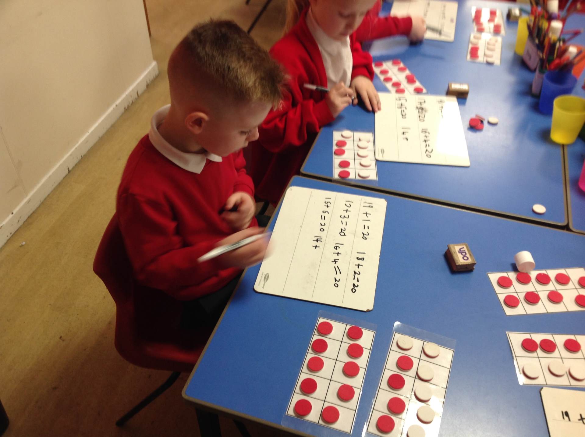 In Maths we have been investigating a range of different practical and mental strategies to investigate number bonds to 20.